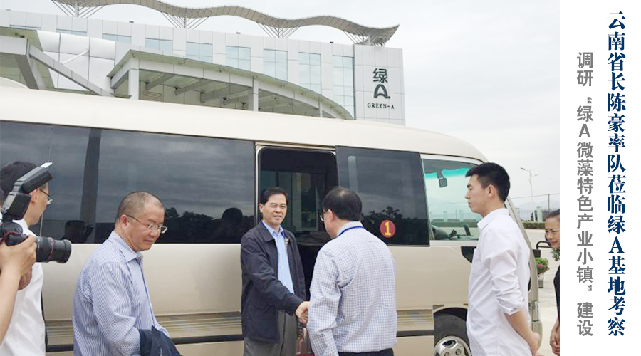 4月16日,云南省省长陈豪、副省长和段祺率省多部委、办、厅、局领导一行前往丽江市永胜县程海镇考察,调研丽江程海“绿A微藻特色产业小镇”建设的可行性。同日,考察团对绿A天然螺旋藻养殖基地进行了视察,并对“绿A微藻特色产业小镇”项目做了重要批示。