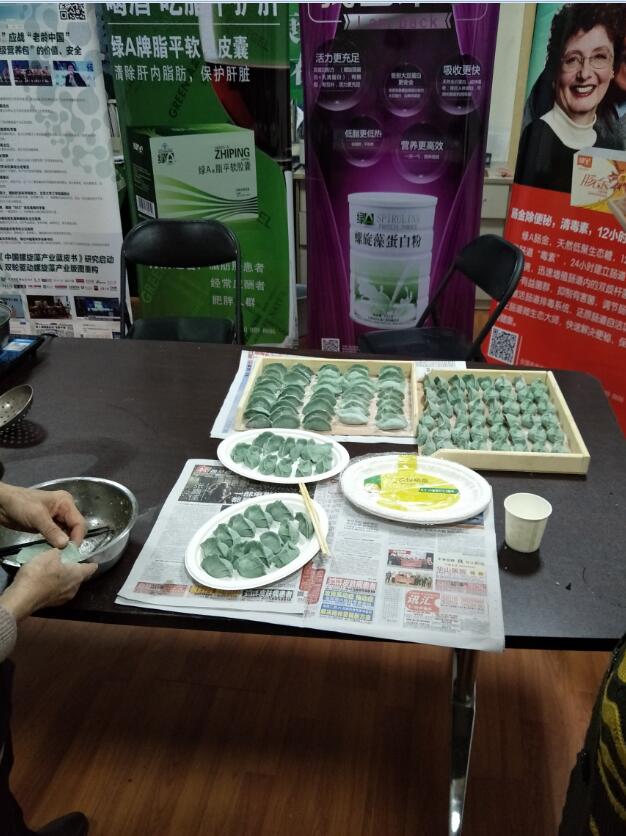 古有“冬至大如年”的说法。而冬至过后,春节也不远了。为了庆祝冬至、迎接春节,天津绿A专卖店特意于12月17日组织会员进行了制作螺旋藻饺子的活动,与会员提前共庆佳节。
