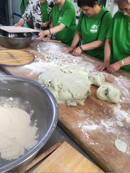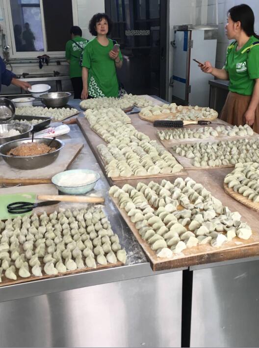 在和孩子们观看完儿童村的宣传片后,会员们便热火朝天地开始为孩子们包饺子了。看着一个个薄皮大馅的饺子,仿佛包的不是馅儿,而是满满的爱。