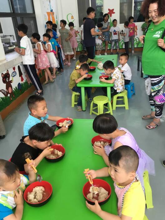 原本计划两个小时才能完成的包饺子任务,没想到人多力量大,不一会儿就完成了。到了中午,孩子们如愿吃上了共同奋斗完成的饺子。