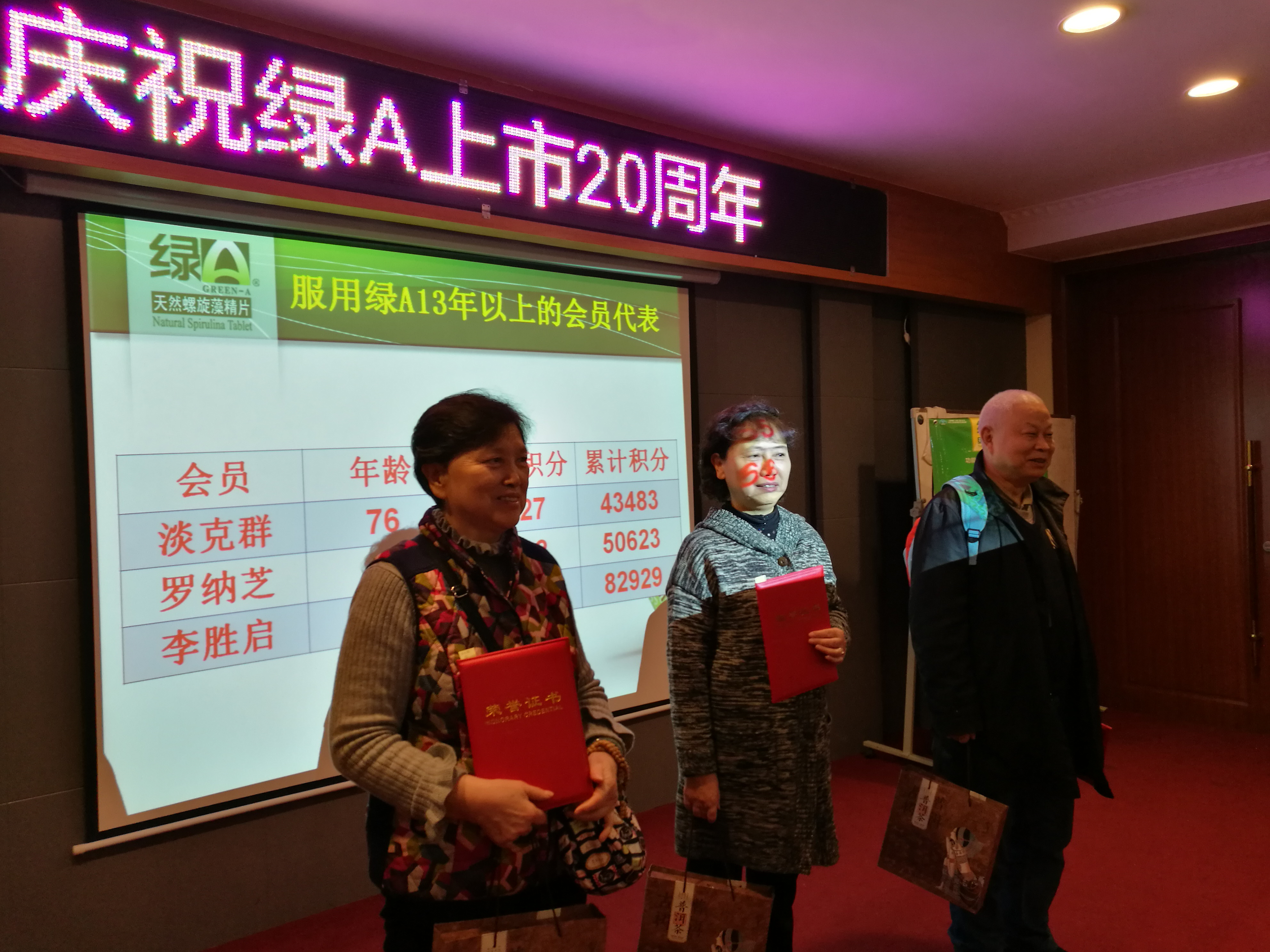 19日在云南昆明索菲特酒店落幕的绿A螺旋藻20周年盛典仿佛并未给绿A的感恩潮划下句点。11月16日和26日,绿A重庆分公司也为他们自己的会员们诚挚送上了拳拳祝福。