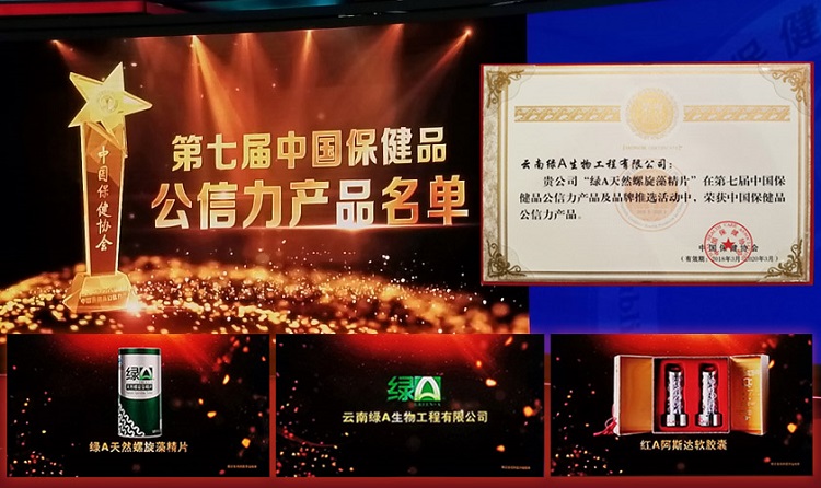 本届推选活动根据候选产品数量,按一定比例确定“公信力产品”名额,并推选出“中国保健品十大公信力品牌”和“100个保健品公信力产品”,经过消费者投票、结合专家评议,绿A公司旗下的“绿A天然螺旋藻精片”、“ 红A阿斯达软胶囊”以非凡的实力和口碑,获得了广大消费者的信任和支持,再次当选“中国保健品公信力产品”,这是绿A自2006年来以来连续第六次品牌、产品获得中国保健品公信力殊荣。