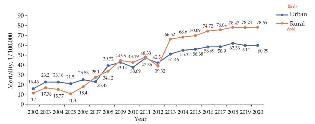 心肌梗死(简称心梗)是一种会威胁生命的急症,主要影响老年人,而随着中国老龄化的趋势严重,2002~2020 年急性心肌梗死(AMI)死亡率总体也呈现上升趋势,近些年农村持续高于城市。那么,心梗的高发人群是哪些?出现哪些症状可能是心梗了呢?