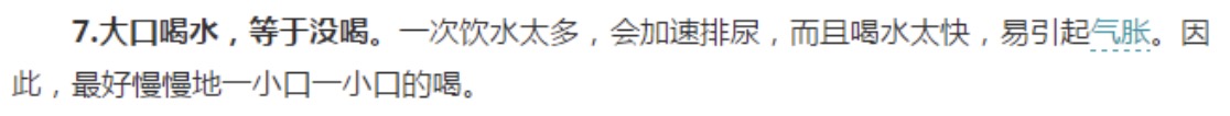 原来“大口喝水”=“饮水太多”,这不胡说嘛。你就是小口喝水,喝多了也会加速排尿啊