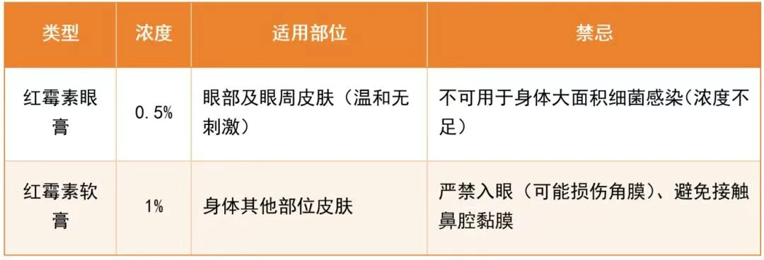很多人分不清红霉素眼膏和软膏,其实两者的核心区别就在浓度上,这直接决定了它们的用法: